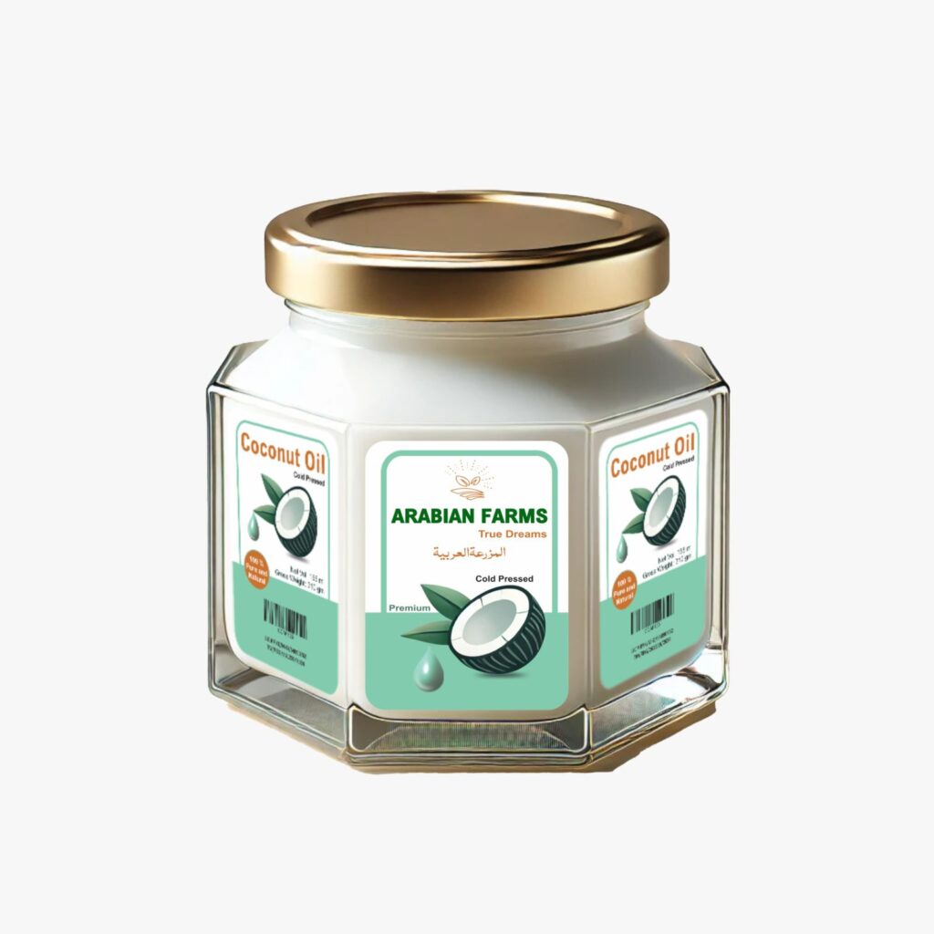 Arabian Organic Coconut Oil is 100% pure and cold-pressed, rich in antioxidants and nutrients. Perfect for skincare and haircare, promoting overall health and wellness.