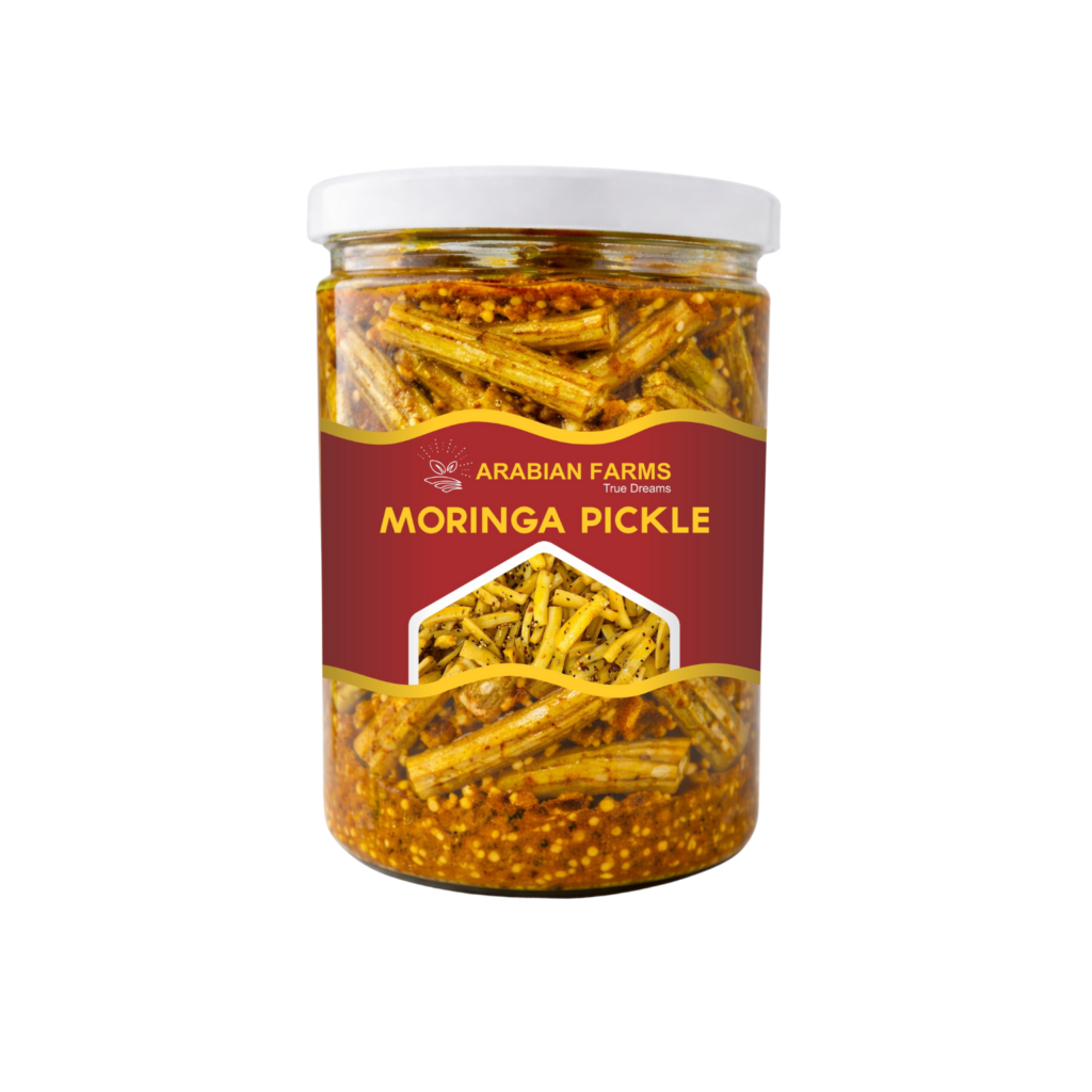 Arabian Farms Moringa Pickle is prepared from fresh moringa pods blended with traditional spices and preserved in oil using time-honored methods. Rich in bold flavor with a unique earthy taste, this pickle offers an authentic homemade experience that pairs perfectly with everyday meals.